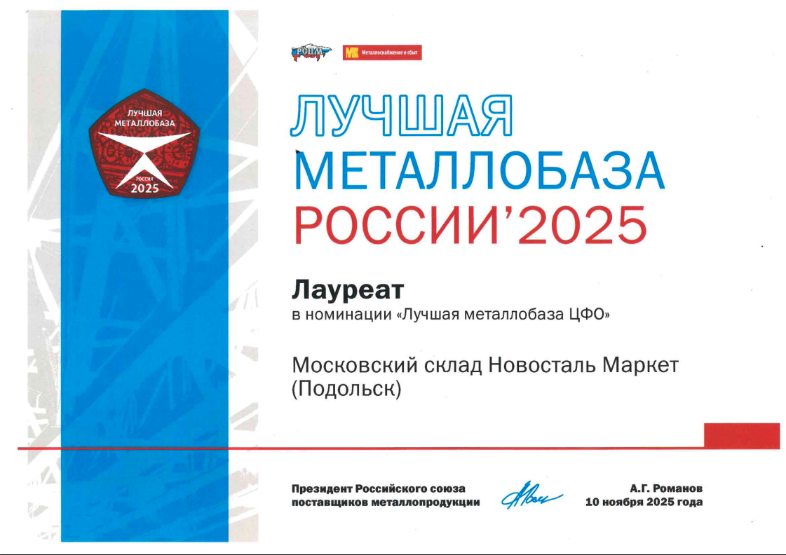 Лауреат в номинации «Лучшая металлобаза по внедрению инноваций» 2019