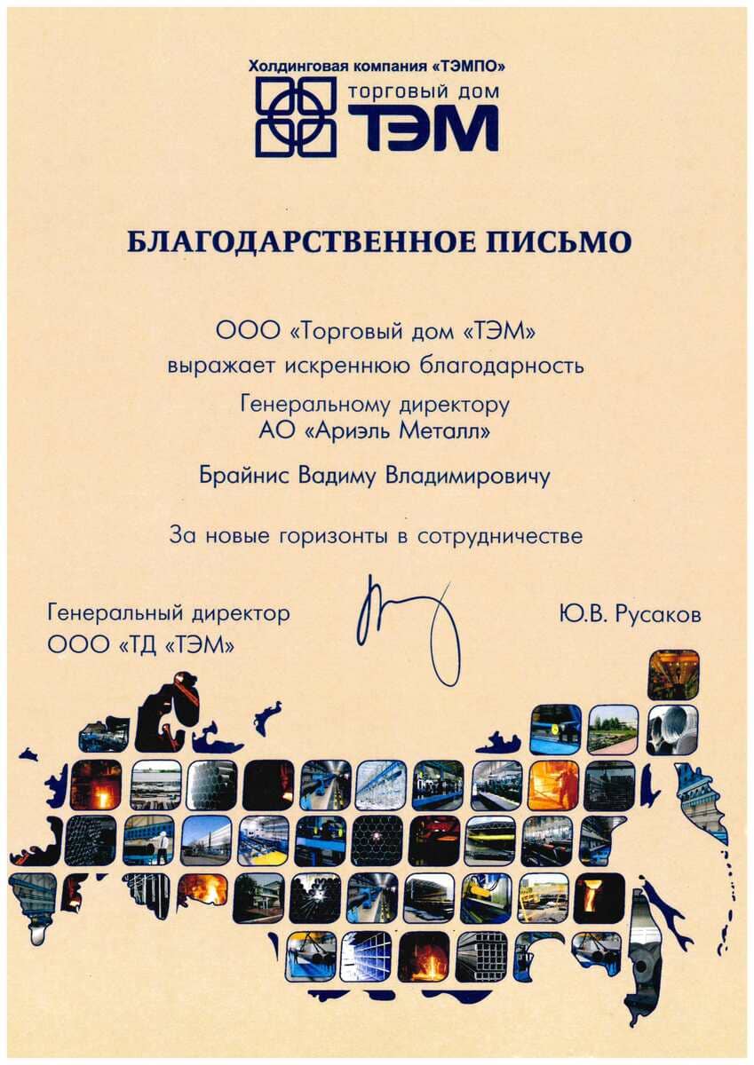 ОАО «Ариэль Металл» является стратегическим партненром ОАО «Уральский трубный завод» в 2014 году